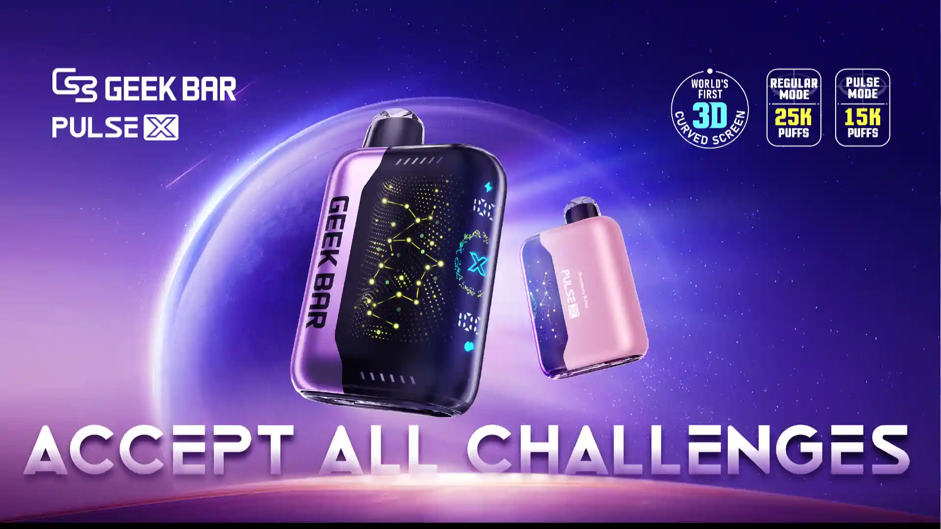 Experience the future with the world's first 3D curved screen and a stunning "Starry Sky" display. Delivering a massive 25,000 puffs (Regular) or 15,000 puffs (Pulse), this powerhouse features an upgraded Dual Mesh Coil and VPU chip for peak flavor and unmatched performance. Slim, tech-forward, and legendary.